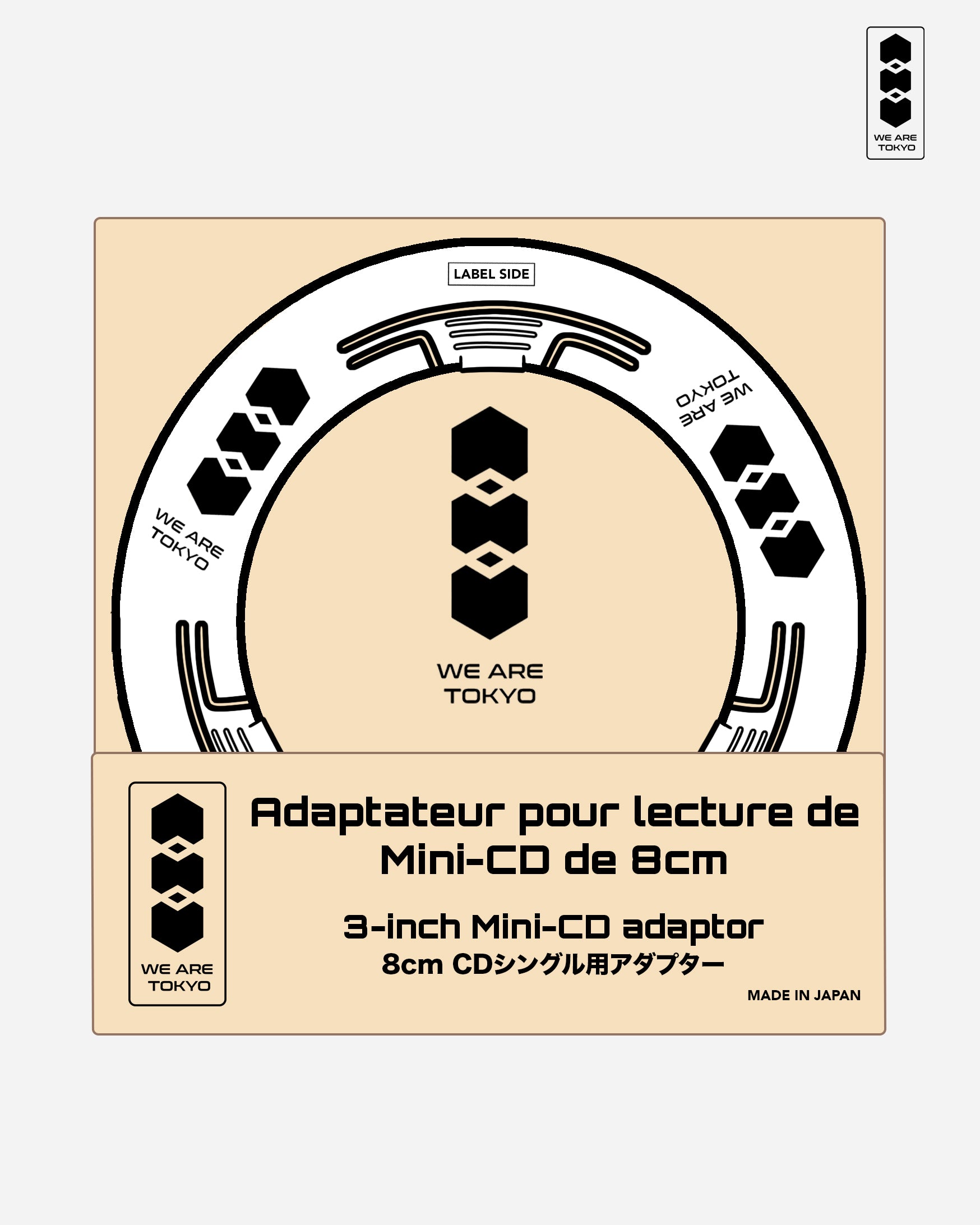 Adaptateur pour Mini-CD de 8cm, permettant d'être lu comme un CD classique de 12cm. (Ne peut pas être utilisé avec des lecteurs de type Slot-in).